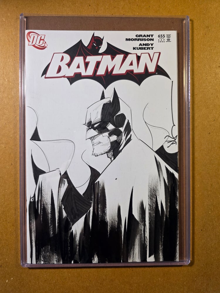 an original illustration of Batman on DC Comics Sketchcover cover by Image and DC Comics artist Dustin Nguyen. One of a kind. Item shipped with extreme care.