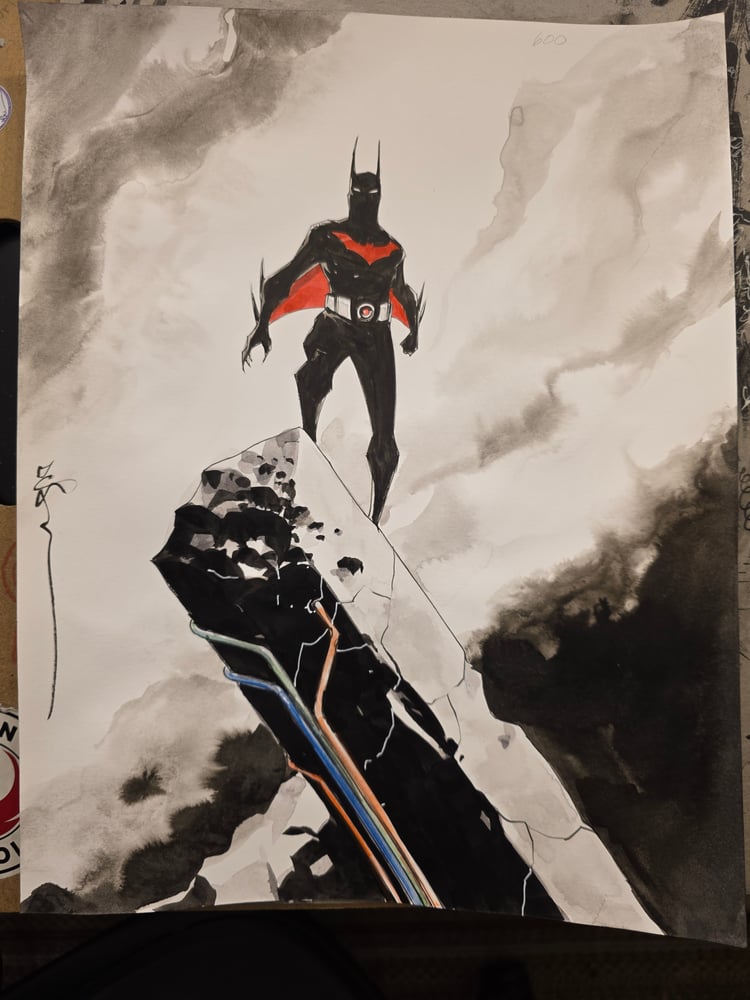 Ink wash original illustration of Batman Beyond by artist Dustin Nguyen, measures 11"x14"on bristol board
