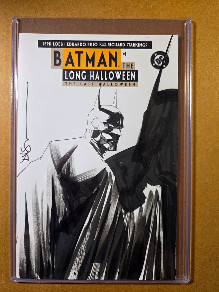 an original illustration of Batman on DC Comics Sketchcover cover by Image and DC Comics artist Dustin Nguyen. One of a kind. Item shipped with extreme care.
