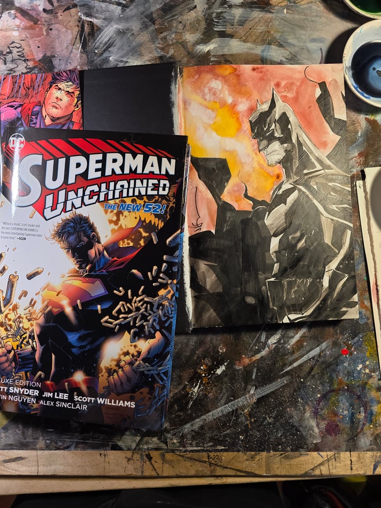 Painted Batman B inside Superman Unchained hardcover (FREE SHIPPING)